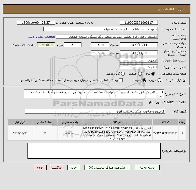 نام دستگاه خریدار:مدیریت شعب بانک مسکن استان اصفهان