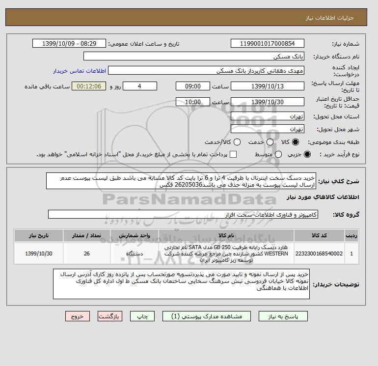 استعلام خرید دسک سخت اینترنال با ظرفیت 4 ترا و 6 ترا بایت کد کالا مشابه می باشد طبق لیست پیوست عدم ارسال لیست پیوست به منزله حذف می باشد26205036 فکس, استعلام خرید دسک سخت اینترنال با ظرفیت 4 ترا و 6 ترا بایت کد کالا مشابه می باشد طبق لیست پیوست عدم ارسال لیست پیوست به منزله حذف می باشد26205036 فکس