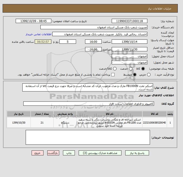 نام دستگاه خریدار:مدیریت شعب بانک مسکن استان اصفهان
