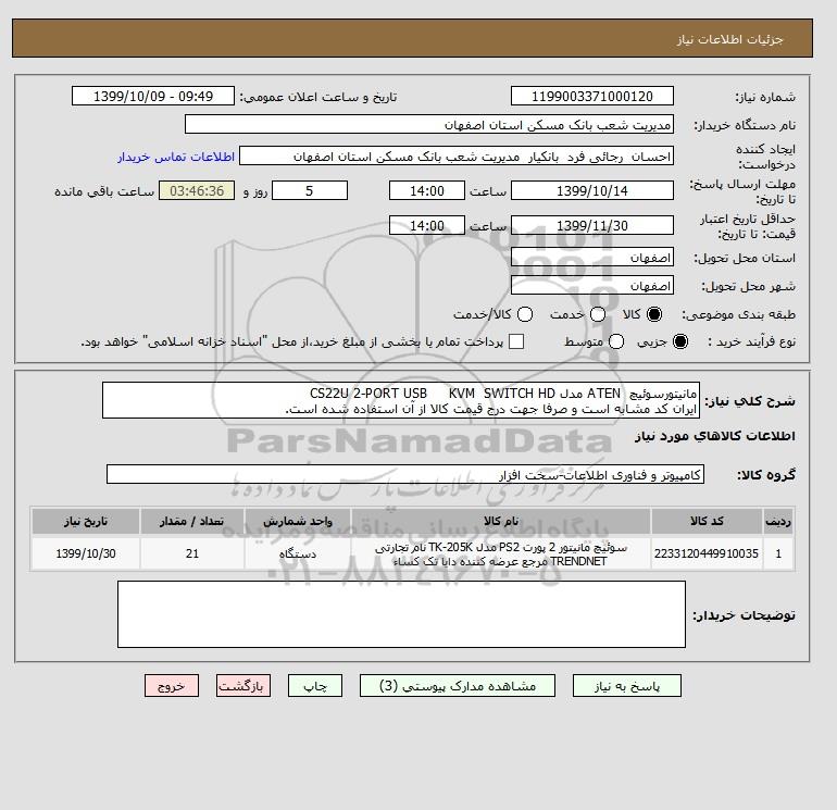 نام دستگاه خریدار:مدیریت شعب بانک مسکن استان اصفهان
