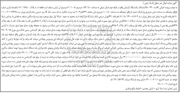 مزایده ششدانگ یک دستگاه آپارتمان 184.50 مترمربع کلاسه 9500620