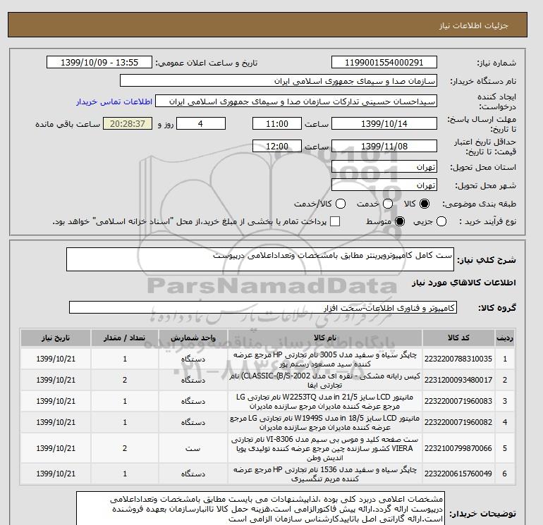 شرح کلی نیاز: ست کامل کامپیوتروپرینتر مطابق بامشخصات وتعداداعلامی درپیوست
