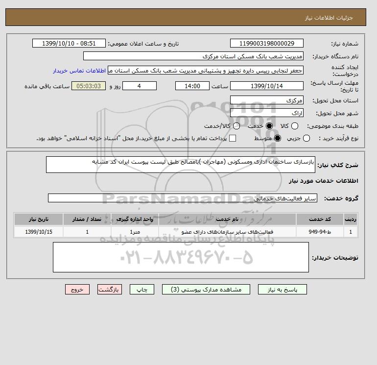 نام دستگاه خریدار:مدیریت شعب بانک مسکن استان مرکزی