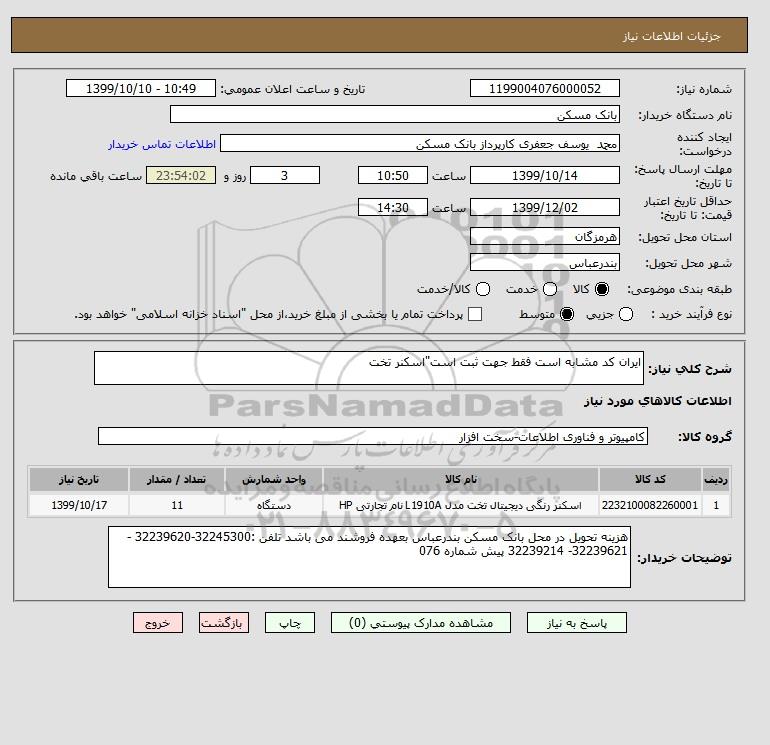 شرح کلی نیاز: ایران کد مشابه است فقط جهت ثبت است"اسکنر تخت