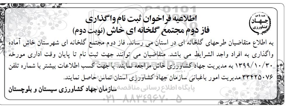 اطلاعیه اگهی فراخوان ثبت نام واگذاری فاز دوم مجتمع گلخانه ای خاش نوبت دوم ؟