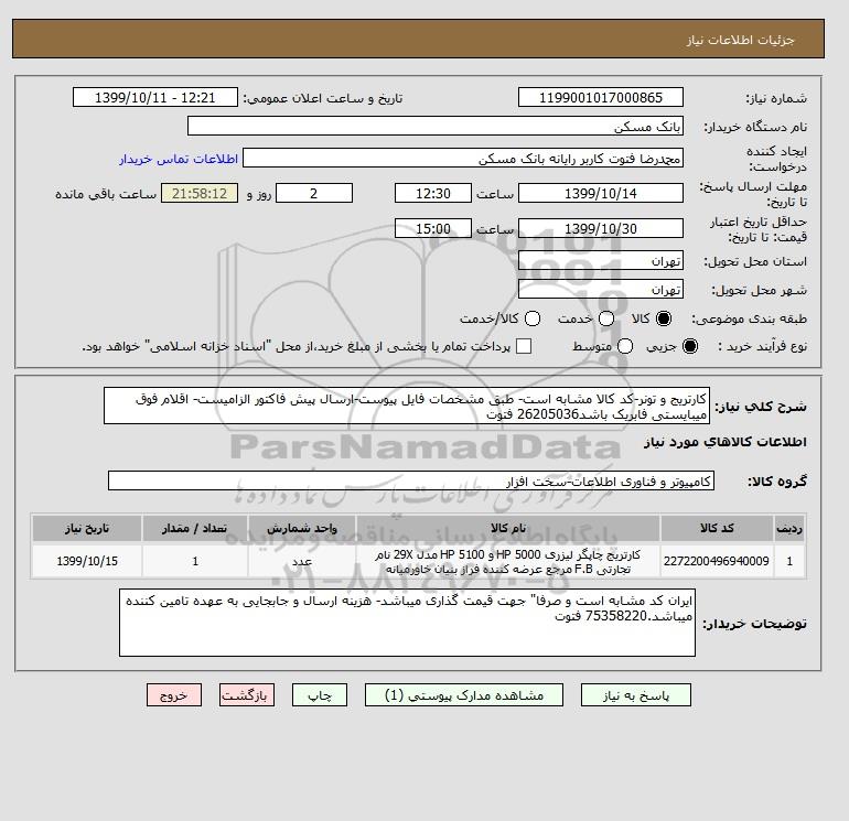 استعلام کارتریج و تونر-کد کالا مشابه است- طبق مشخصات فایل پیوست-ارسال پیش فاکتور الزامیست- اقلام فوق میبایستی فابریک باشد26205036 فتوت, استعلام کارتریج و تونر-کد کالا مشابه است- طبق مشخصات فایل پیوست-ارسال پیش فاکتور الزامیست- اقلام فوق میبایستی فابریک باشد26205036 فتوت