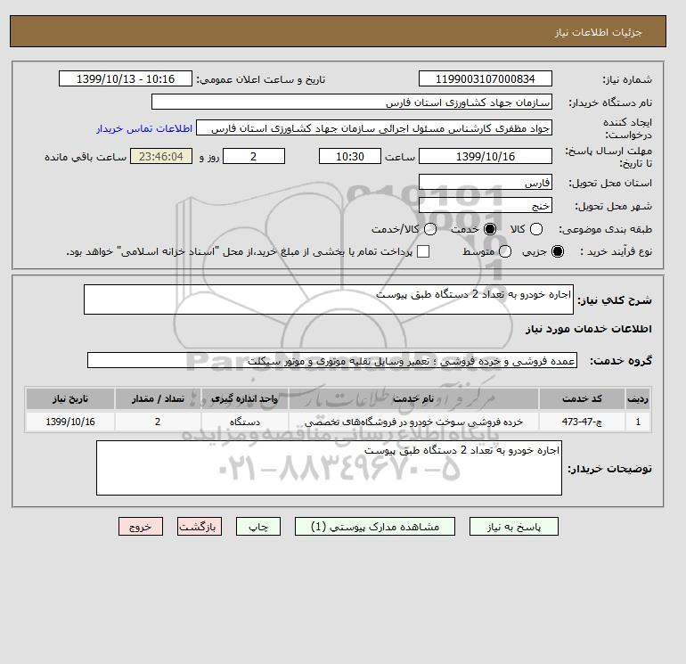 شرح کلی نیاز: اجاره خودرو به تعداد 2 دستگاه طبق پیوست