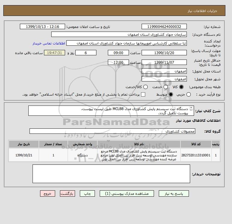 نام دستگاه خریدار:سازمان جهاد کشاورزی استان اصفهان
