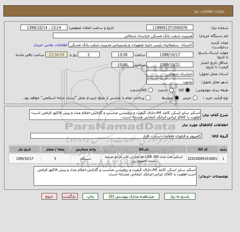 نام دستگاه خریدار:مدیریت شعب بانک مسکن خراسان شمالی