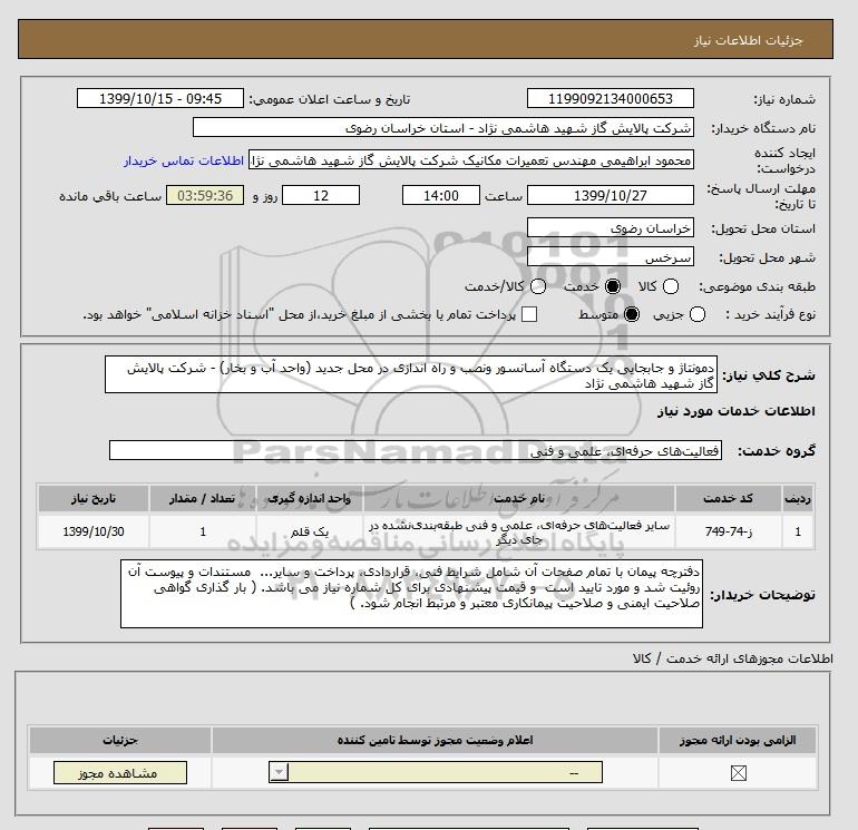 نام دستگاه خریدار:شرکت پالایش گاز شهید هاشمی نژاد - استان خراسان رضوی