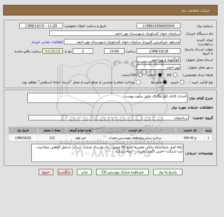 شرح کلی نیاز: احداث کانال کره تنگاری طبق برآورد پیوست
