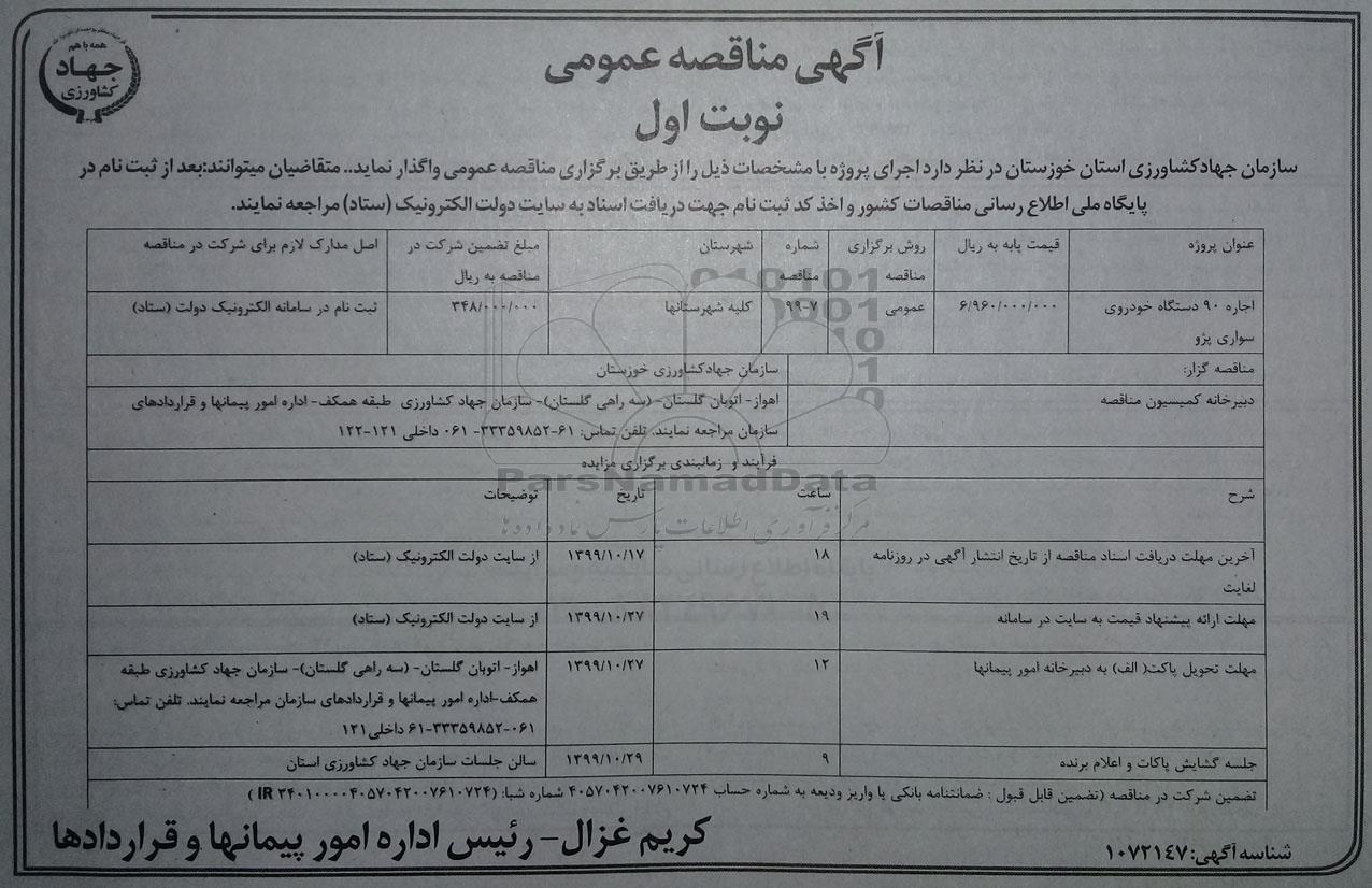 مناقصه گزار : سازمان جهاد کشاورزی خوزستان