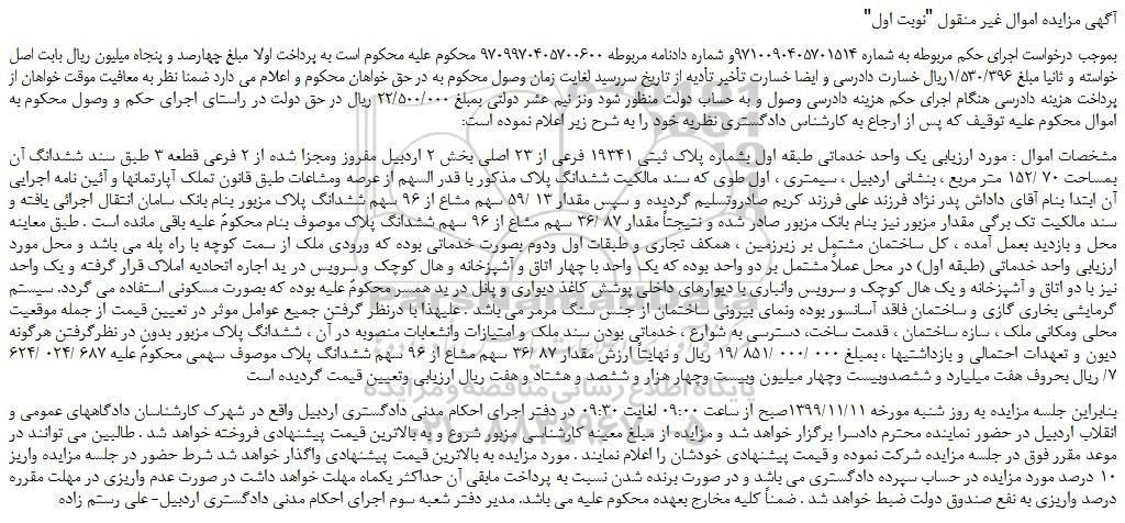 "آگهی مزایده اموال غیر منقول "نوبت اول