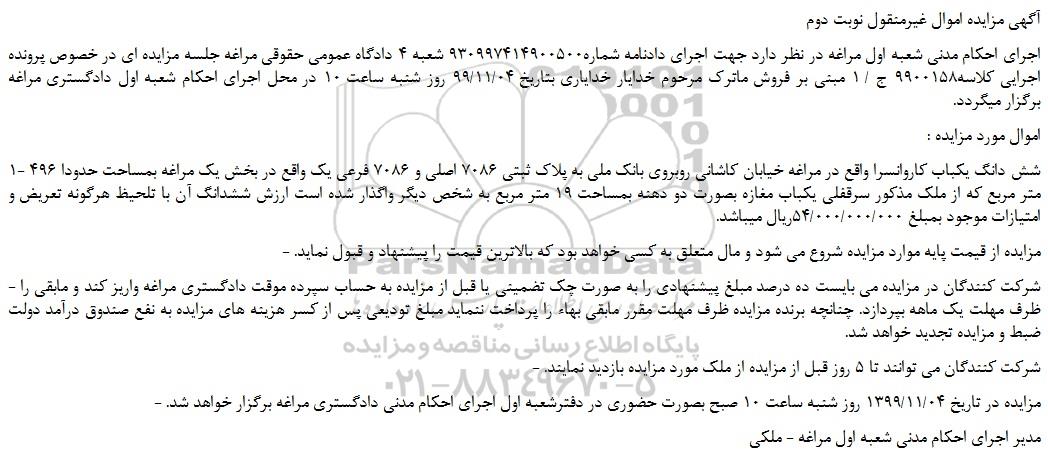 آگهی مزایده اموال غیرمنقول نوبت دوم