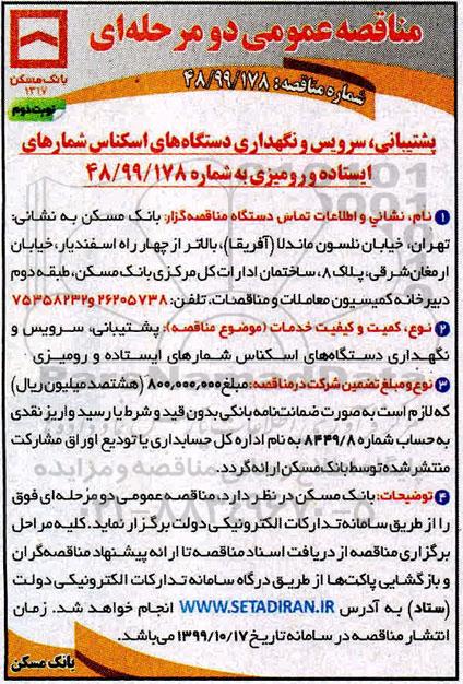 مناقصه پشتیبانی، سرویس و نگهداری دستگاه های اسکناس شمارهای ایستاده... نوبت دوم, مناقصه عمومی , مناقصه پشتیبانی، سرویس و نگهداری دستگاه های اسکناس شمارهای ایستاده... نوبت دوم