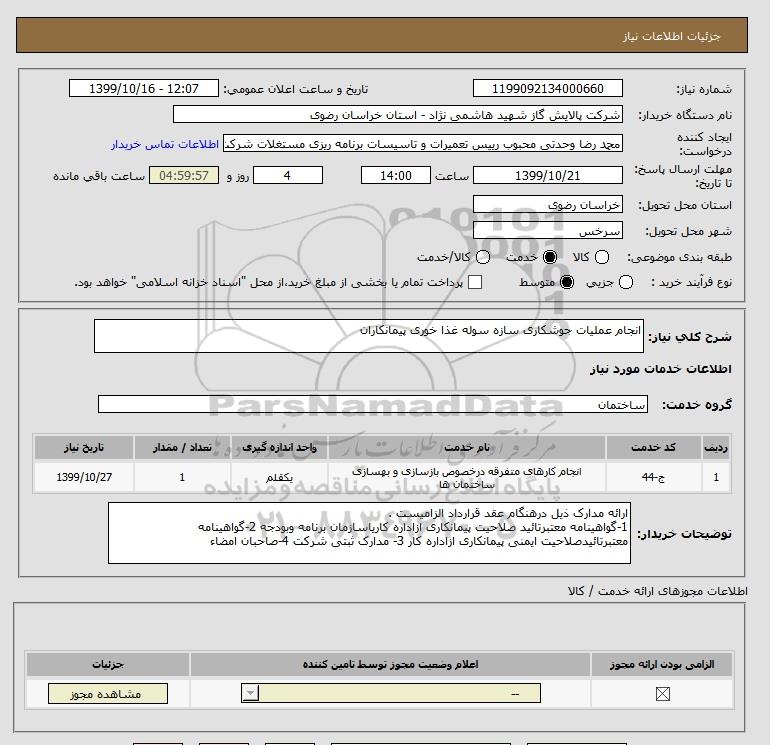 نام دستگاه خریدار:شرکت پالایش گاز شهید هاشمی نژاد - استان خراسان رضوی