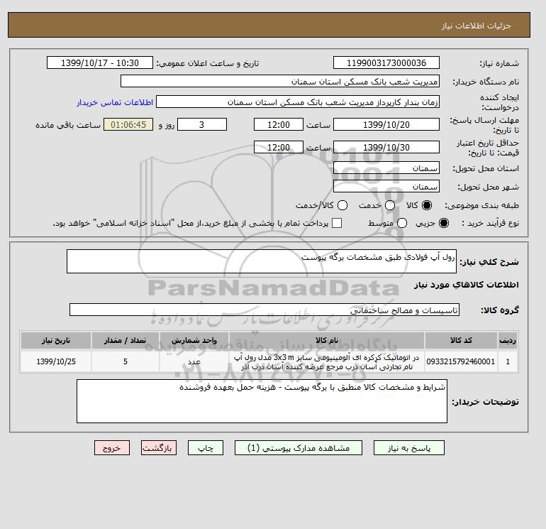 شرح کلی نیاز: رول آپ فولادی طبق مشخصات برگه پیوست