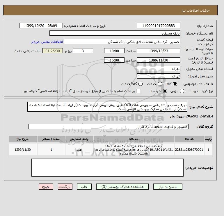 شرح کلی نیاز: تهیه ، نصب و پشتیبانی سرویس های OCR طبق پیش نویس قرارداد پیوست(از ایران کد مشابه استفاده شده است) ارسال اصل مدارک پیوستی الزامی است