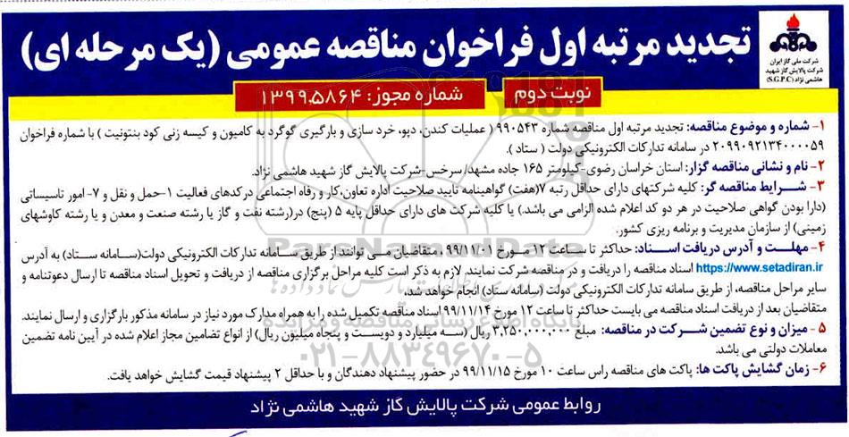 تجدید مناقصه عملیات کندن، دپو، خردسازی و بارگیری گوگرد به کامیون و کیسه زنی کود بنتونیت از کلیه افراد متخصص و شرکتها واجد شرایط دعوت به عمل میآید در مناقصه با کد خبرگزاری پارس نماد: 3051604 شرکت نمایند.