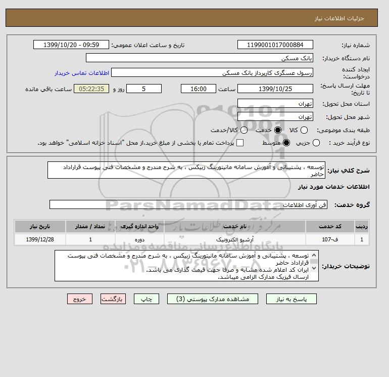 توضیحات خریدار:توسعه ، پشتیبانی و آموزش سامانه مانیتورینگ زبیکس ، به شرح مندرج و مشخصات فنی پیوست قراراداد حاضر