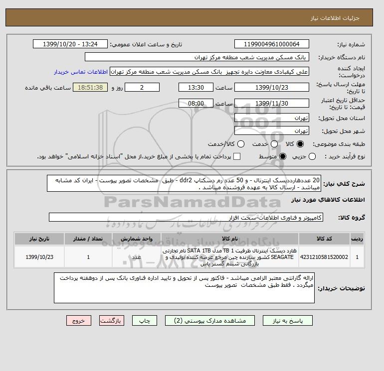 استعلام 20 عددهارددیسک اینترنال - و 50 عدد رم دسکتاپ ddr2 - طبق مشخصات تصویر پیوست - ایران کد مشابه میباشد - ارسال کالا به عهده فروشنده میباشد ., استعلام 20 عددهارددیسک اینترنال - و 50 عدد رم دسکتاپ ddr2 - طبق مشخصات تصویر پیوست - ایران کد مشابه میباشد - ارسال کالا به عهده فروشنده میباشد .