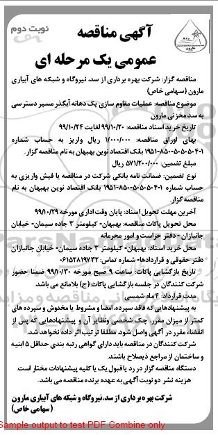 مناقصه گزار: شرکت بهره برداری از سد، نیروگاه و شبکه های آبیاری مارون (سهامی خاص)