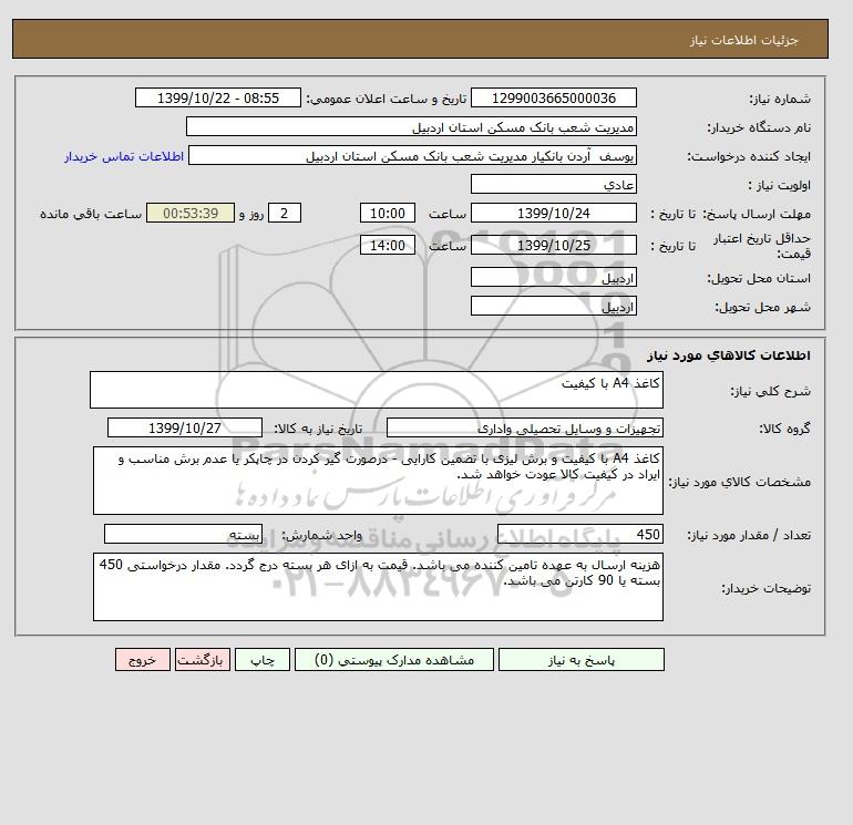 نام دستگاه خریدار:مدیریت شعب بانک مسکن استان اردبیل