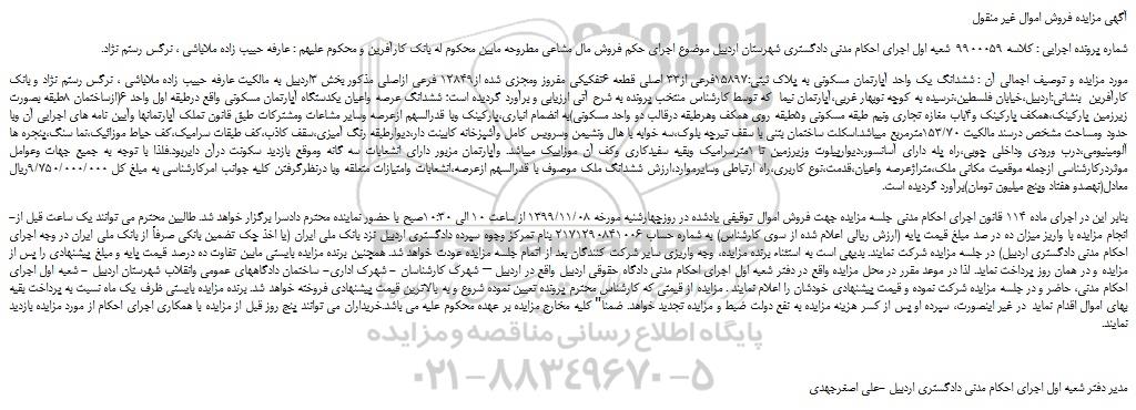 شعبه صادر کننده:شعبه اول اجرای احکام مدنی دادگستری شهرستان اردبیل/قدیم