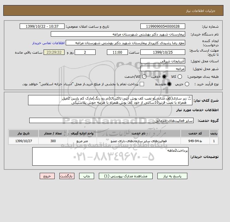نام دستگاه خریدار:بیمارستان شهید دکتر بهشتی شهرستان مراغه