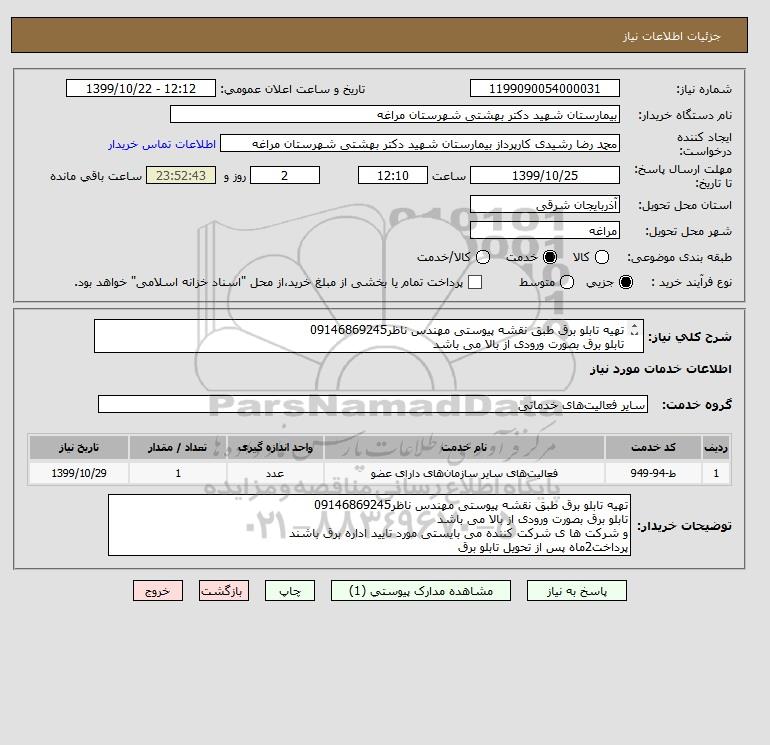 شرح کلی نیاز: تهیه تابلو برق طبق نقشه پیوستی مهندس ناظر09146869245