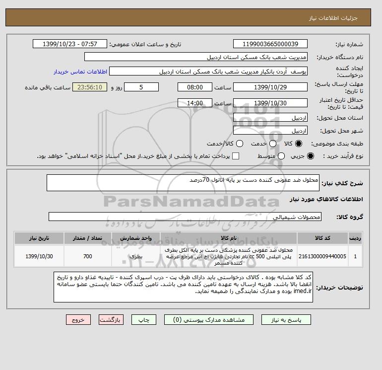 نام دستگاه خریدار:مدیریت شعب بانک مسکن استان اردبیل