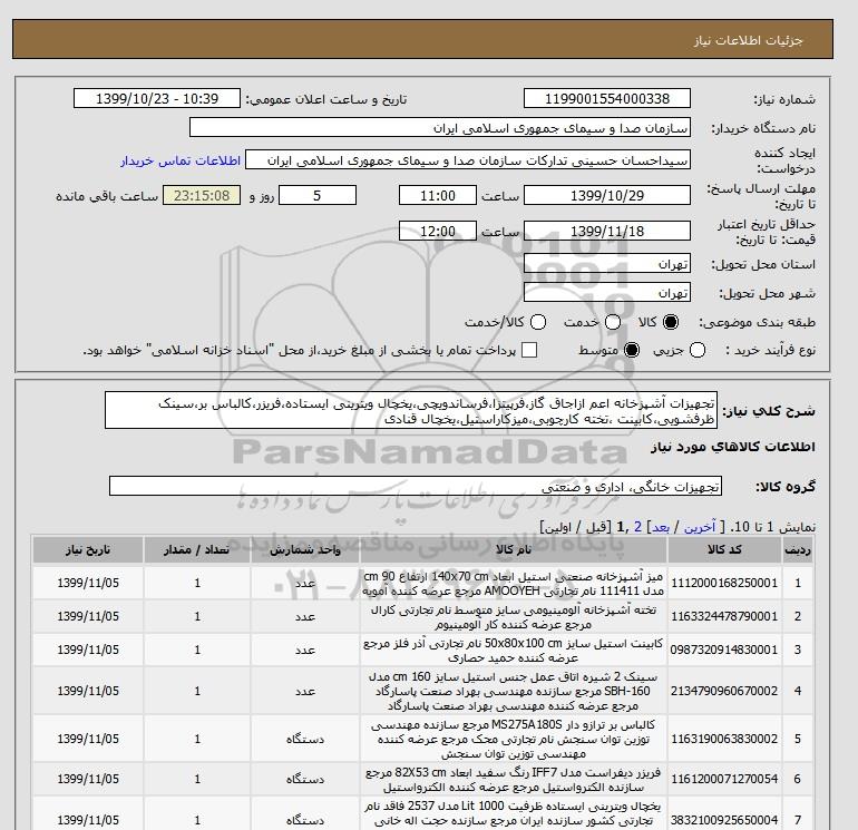| 3 | 0987320914830001 | کابینت استیل سایز 50x80x100 cm نام تجارتی آذر فلز مرجع عرضه کننده حمید حصاری | عدد | 1 | 1399/11/05 |
