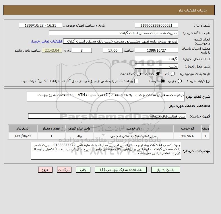 شرح کلی نیاز: درخواست سفارش ساخت و نصب به تعداد هفت ( 7) عدد سایبان ATM با مشخصات شرح پیوست