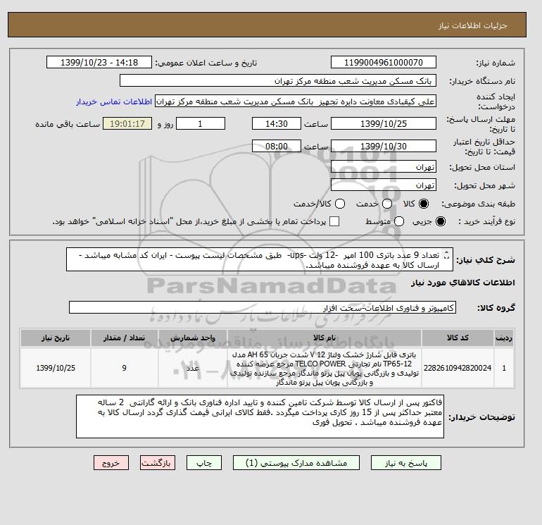 نام دستگاه خریدار: بانک مسکن مدیریت شعب منطقه مرکز تهران