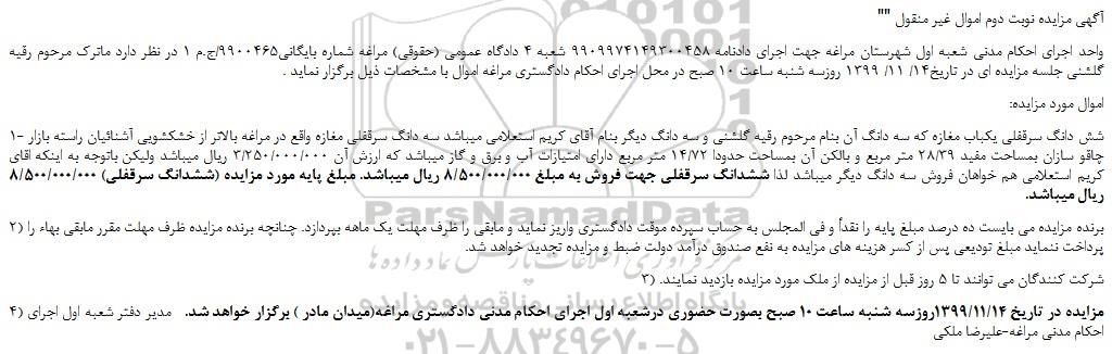 "آگهی مزایده نوبت دوم اموال غیر منقول "