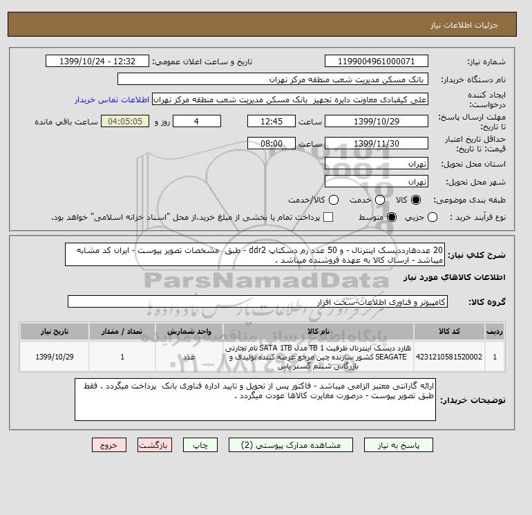 نام دستگاه خریدار: بانک مسکن مدیریت شعب منطقه مرکز تهران