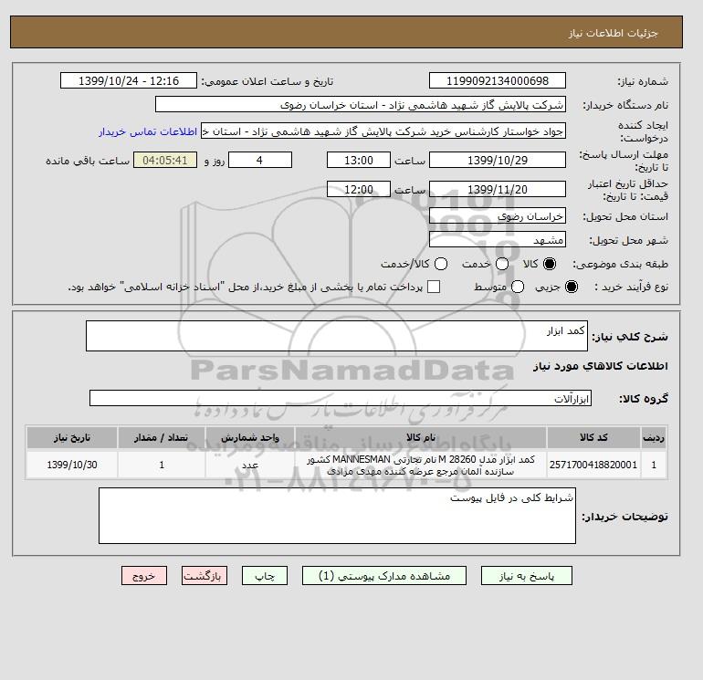 نام دستگاه خریدار:شرکت پالایش گاز شهید هاشمی نژاد - استان خراسان رضوی