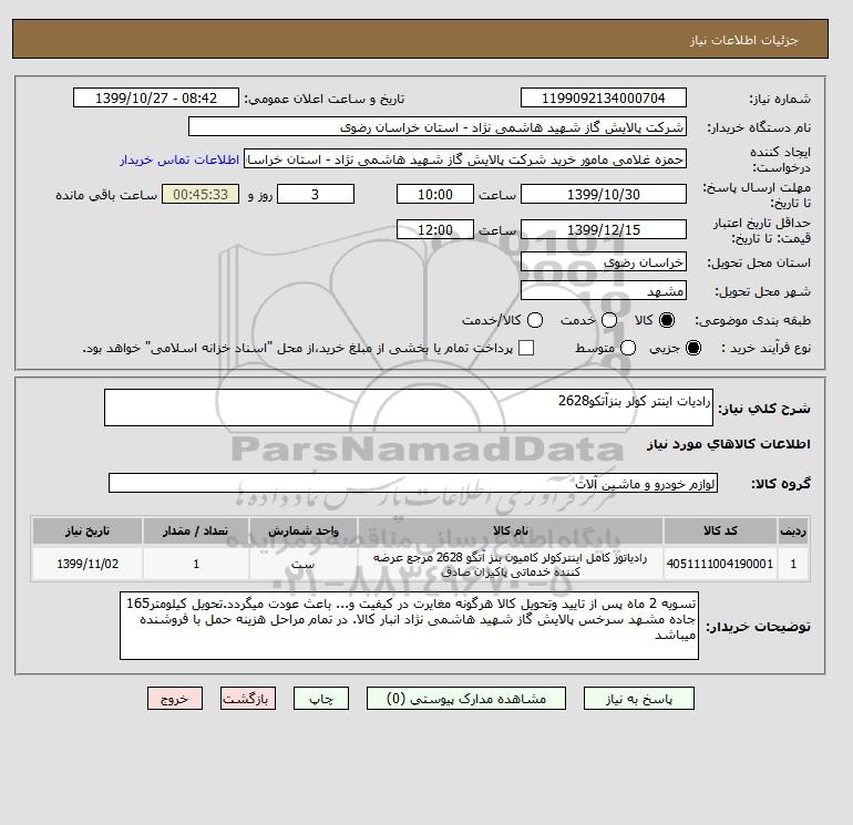 نام دستگاه خریدار:شرکت پالایش گاز شهید هاشمی نژاد - استان خراسان رضوی