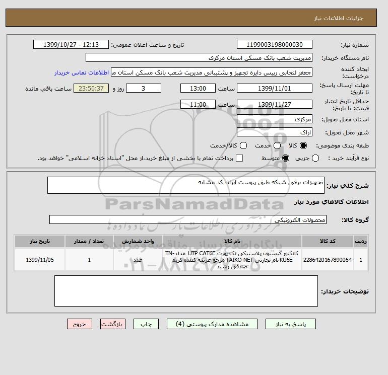 نام دستگاه خریدار:مدیریت شعب بانک مسکن استان مرکزی