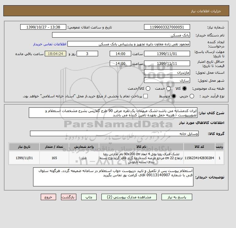شرح کلی نیاز: ایران کدمشابه می باشد-تشک میهمان یک نفره عرض 90 طرح گلاریس بشرح مشخصات استعلام و تصویرپیوست - هزینه حمل بعهده تامین کننده می باشد
