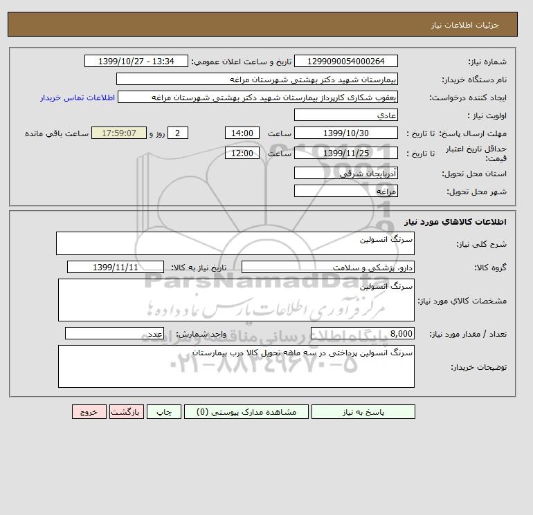 نام دستگاه خریدار:بیمارستان شهید دکتر بهشتی شهرستان مراغه