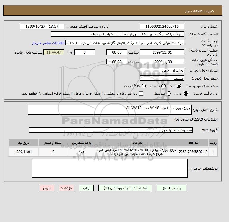 نام دستگاه خریدار:شرکت پالایش گاز شهید هاشمی نژاد - استان خراسان رضوی