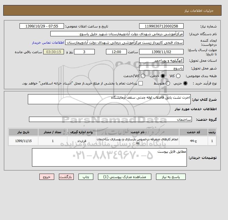 نام دستگاه خریدار:مرکزآموزشی درمانی شهدای دولت آبادوبیمارستان شهید جلیل یاسوج