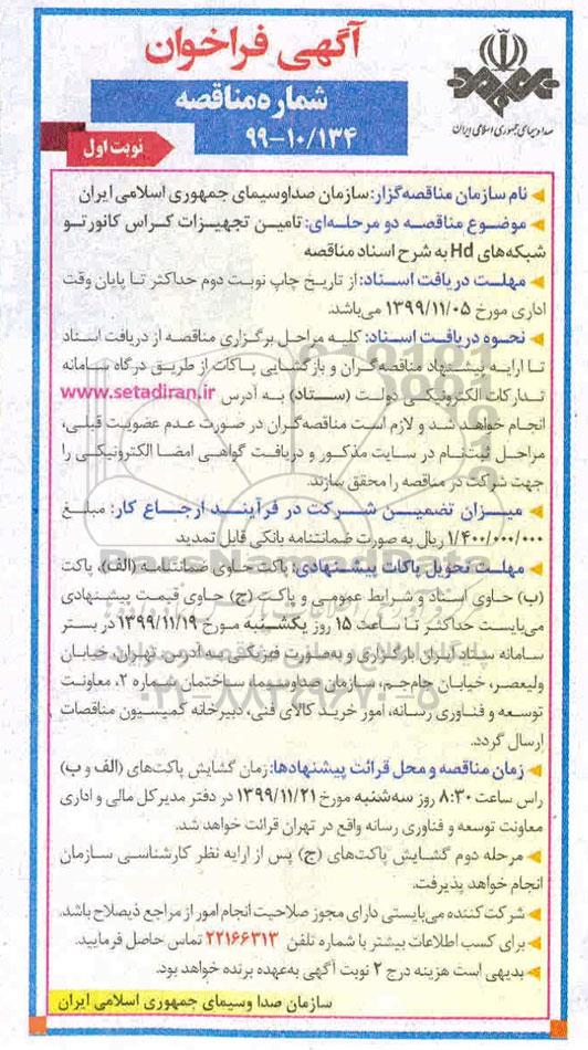 فراخوان مناقصه تامین تجهیزات کراس کانورتو شبکه های HD, فراخوان مناقصه تامین تجهیزات کراس کانورتو شبکه های HD