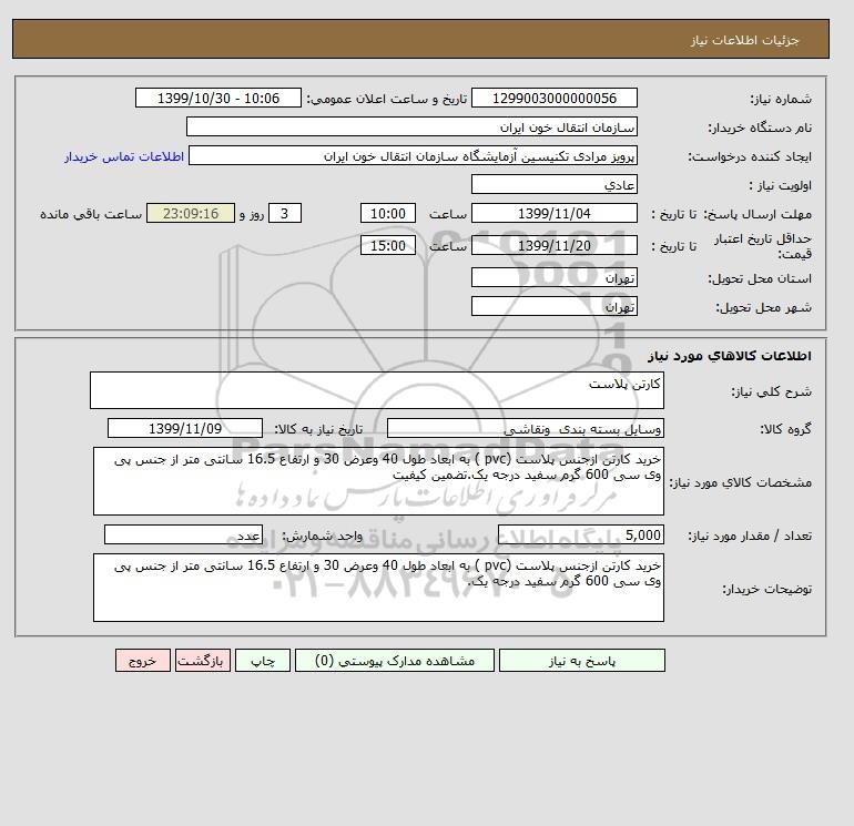 نام دستگاه خریدار:سازمان انتقال خون ایران
