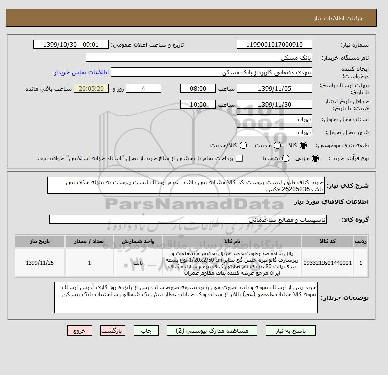 شرح کلی نیاز: خرید کناف طبق لیست پیوست کد کالا مشابه می باشد عدم ارسال لیست پیوست به منزله حذف می باشد26205036 فکس