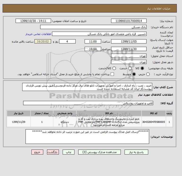 شرح کلی نیاز: خرید ، نصب ، راه اندازی ، اجرا و آموزَش تجهیزات تابلو های برق مرکز داده فردوسی(طبق پیش نویس قرارداد پیوست)از ایران کد مشابه استفاده شده است