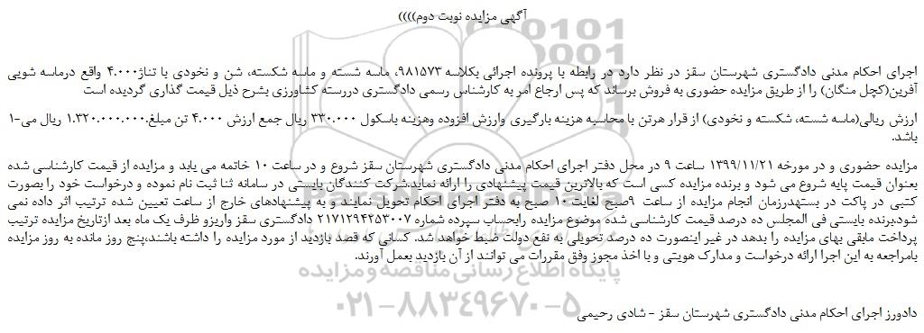 ((آگهی مزایده نوبت دوم))
