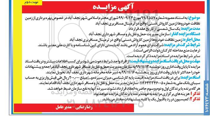 مزایده بهره برداری از زمین نظافت خودروها نوبت دوم , مزایده بهره برداری از زمین نظافت خودروها نوبت دوم