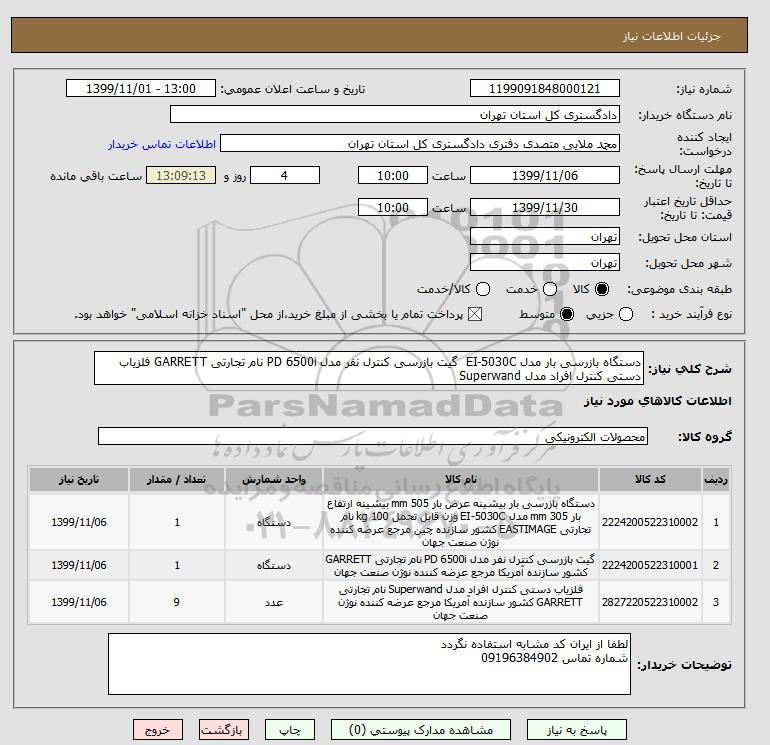 استعلام دستگاه بازرسی بار مدل EI-5030C گیت بازرسی کنترل نفر مدل PD 6500i نام تجارتی GARRETT آشکار ساز فلز دستی کنترل افراد مدل Superwand , استعلام دستگاه بازرسی بار مدل EI-5030C گیت بازرسی کنترل نفر مدل PD 6500i نام تجارتی GARRETT آشکار ساز فلز دستی کنترل افراد مدل Superwand